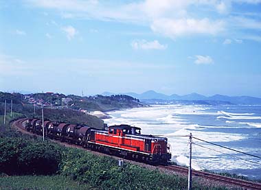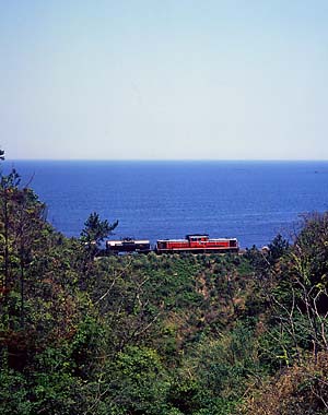 「海のモノ」ばっかりなのでここらで「山のモノ」でも…。波子〜久代の有名撮影地です。ここは行く度に草木が伸びて来てたなぁ。もう撮れなくなっているかも。出雲も貨物も来ない今となってはどーでもいいのですが(笑)。