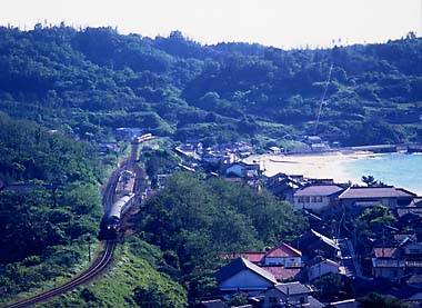 えーっと、ここは温泉津ですね。米子方の陸橋から撮ってます。