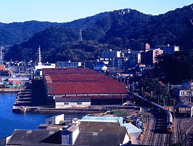 列車の右側の庫にはかつて入換機がいたそうで、この倉庫街での入換を担当していました。この付近の線路はいつから使われなくなったか知らないのですが、殆どそのまま残っていますね。雰囲気が出ていいのですが…。