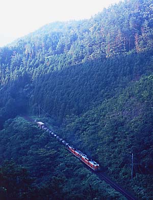 SLの撮影で有名な仁保〜篠目の直線です。95/7/27でこの状態だったので、6月だと当たる可能性がある…のかな?と思ったら、現在の中電重連ダイヤでは当時よりも通過が早くなってますね。もしかして光線が当たる事はないのかも。